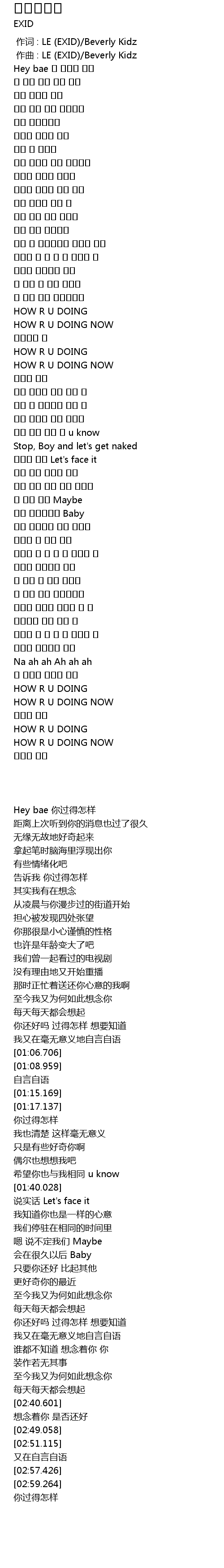 | [02:59.264] | HOW R U DOING NOW |