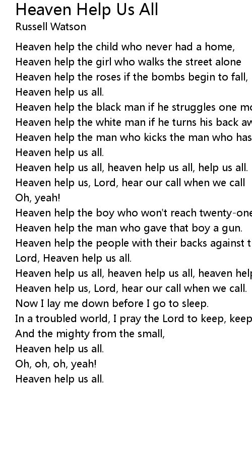 Heaven help us all, heaven help us all, heaven help us all, help us all. |