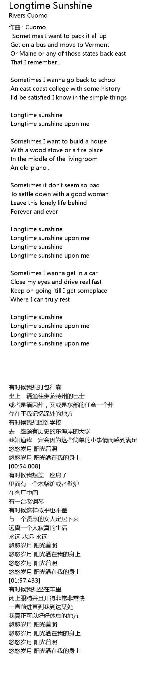 | Longtime sunshine upon me | |