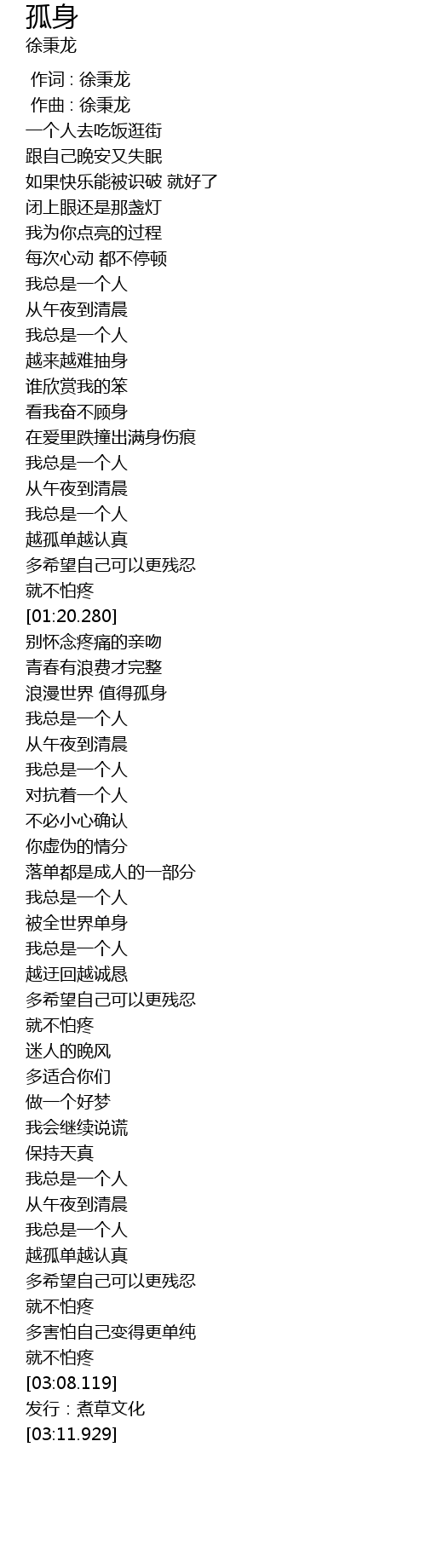 | [00:00.000] | 作词 : 徐秉龙 |