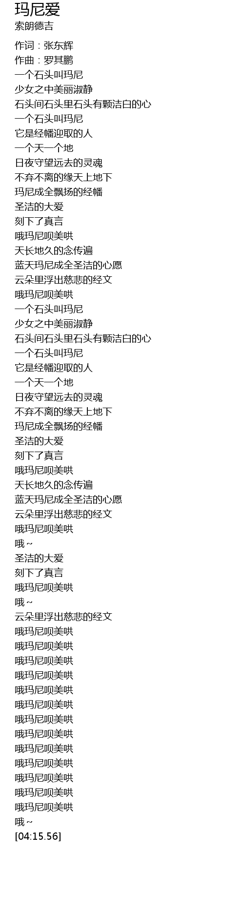 | [00:42.19] | 一个石头叫玛尼 |