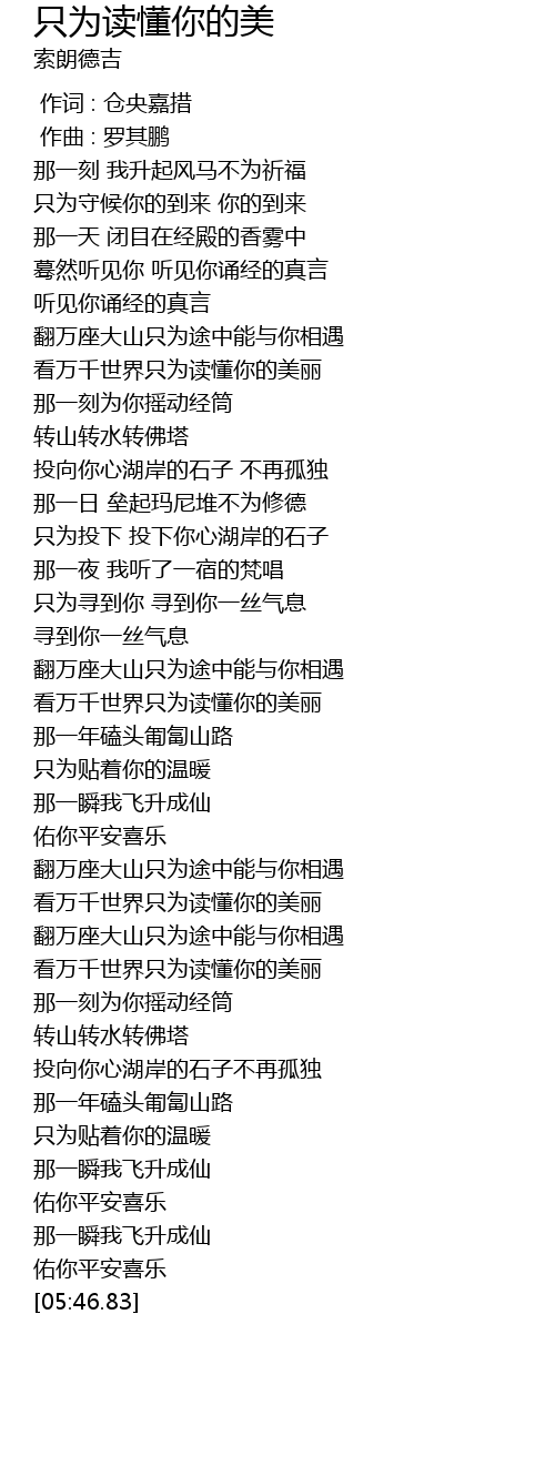 | [01:46.33] | 那一刻为你摇动经筒 |