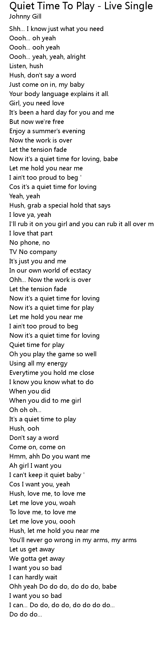 Cos it's a quiet time for loving |