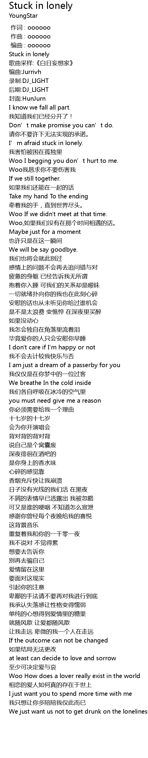 | [00:45.328] | I’m afraid stuck in lonely. |