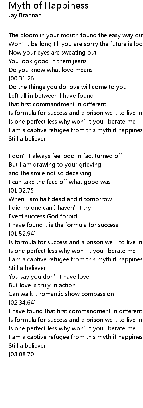 | [02:57.89] | I am a captive refugee from this myth if happiness |