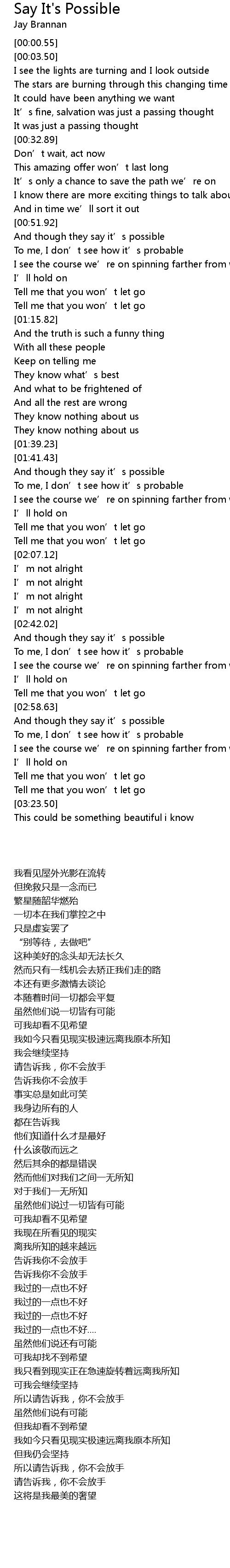 | [00:13.20] | It' s fine, salvation was just a passing thought |