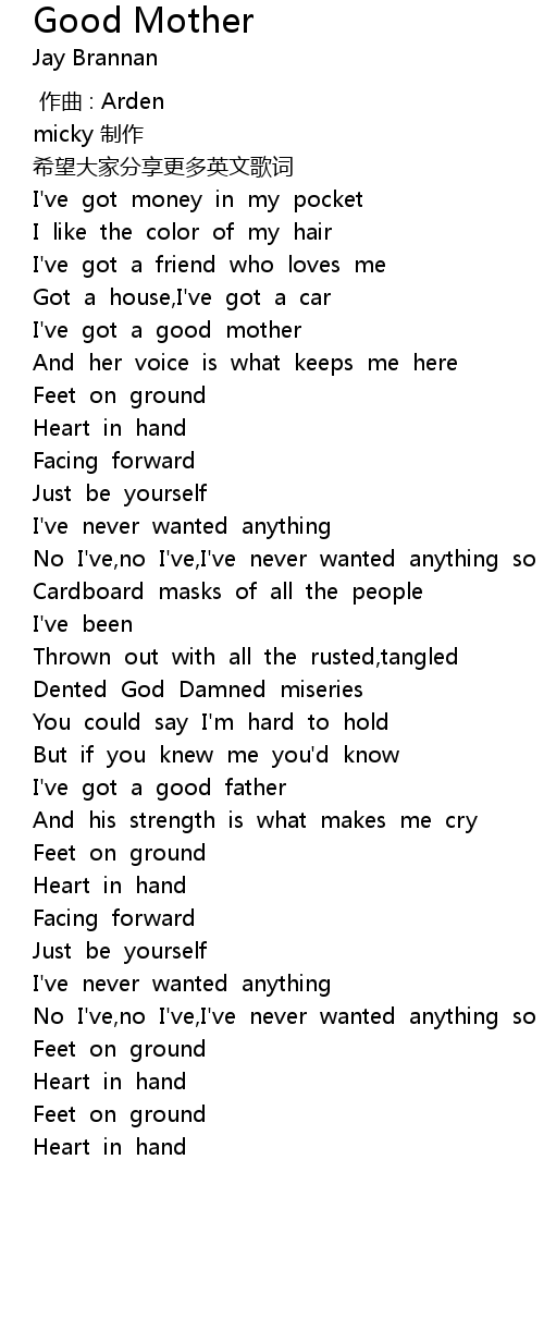 | [00:40.26] | I' ve got a good mother |
