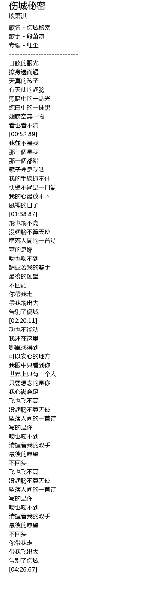 | [03:51.65] | méi chì bǎng bù suàn tiān shǐ |