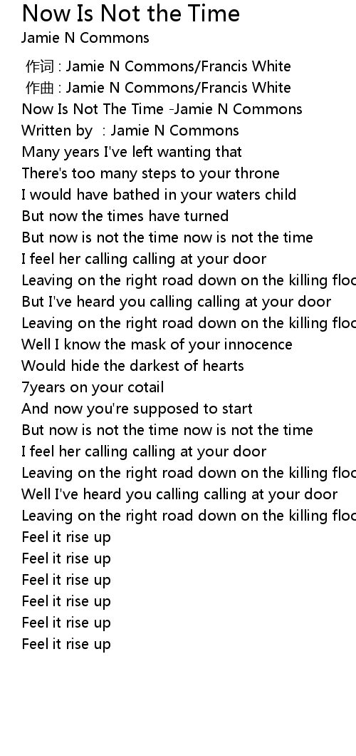 | [00:00.117] | Now Is Not The Time Jamie N Commons |