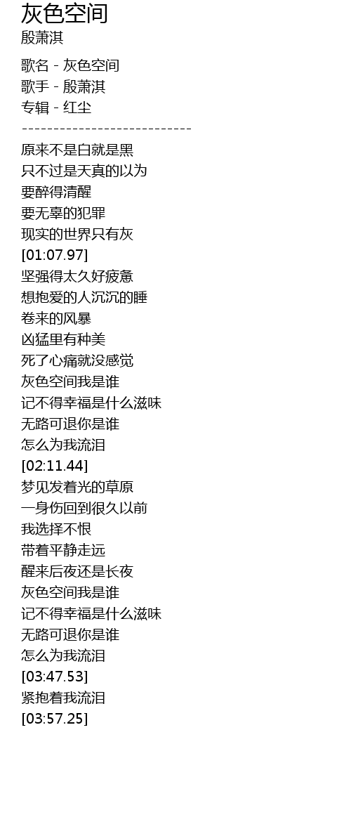 | [01:40.22] | huī sè kōng jiān wǒ shì shuí |