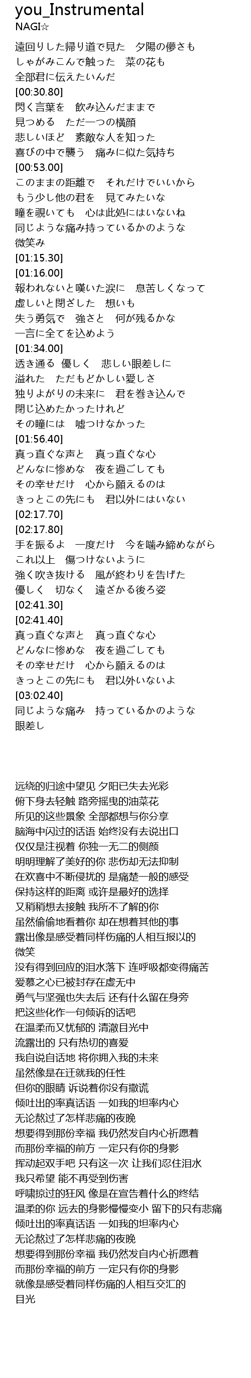 | [02:23.00] | これ以上 傷つけないように |