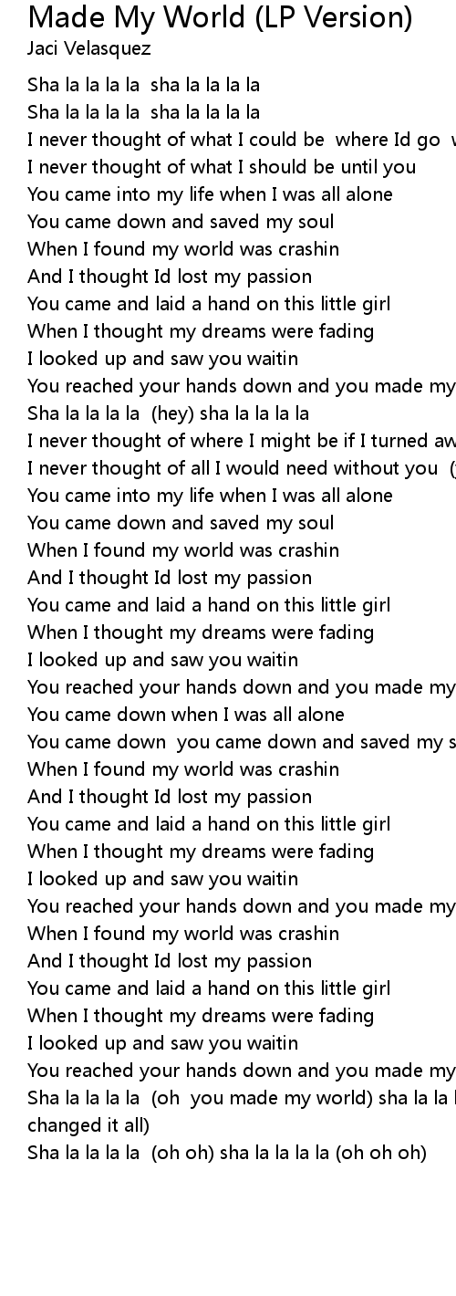 Sha la la la la (oh you made my world) sha la la la la (you came and changed it all) |