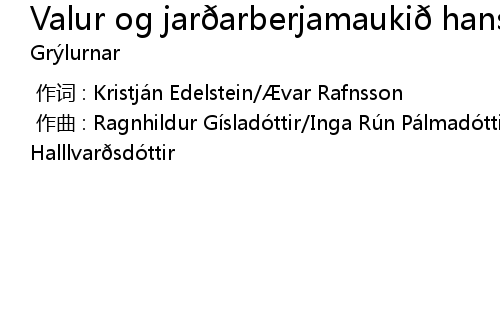 | [00:00.000] | 作曲 : Ragnhildur Gísladóttir/Inga Rún Pálmadóttir/Herdís Halllvarðsdóttir |