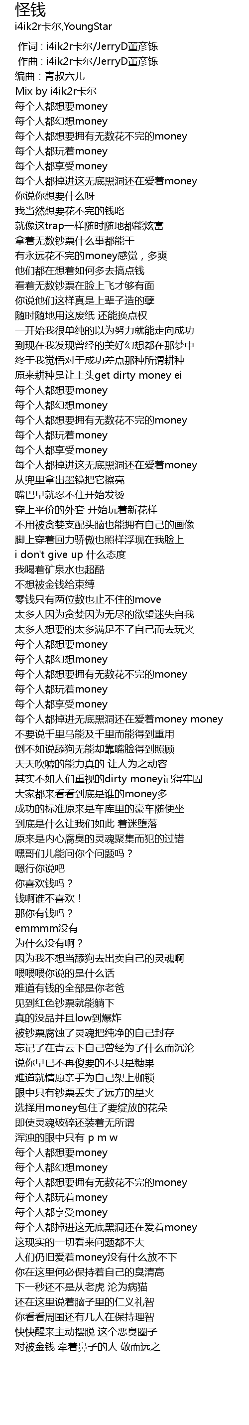 | [00:14.926] | mei ge ren dou xiang yao money |