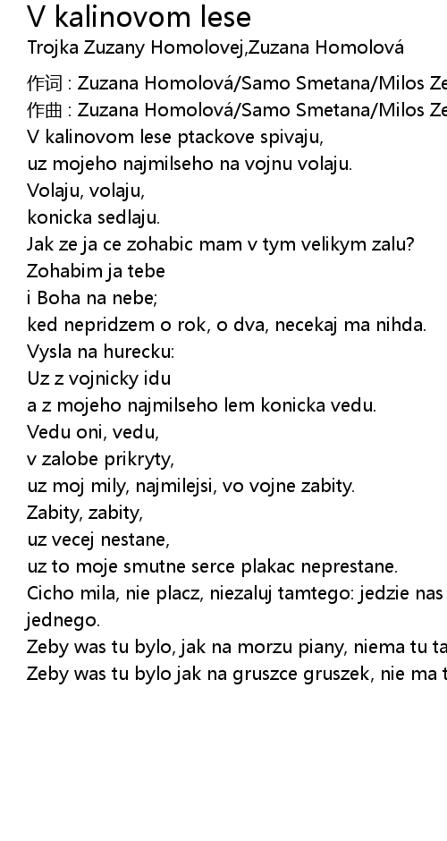 | 作词 : Zuzana Homolová/Samo Smetana/Milos Zeleznak | |