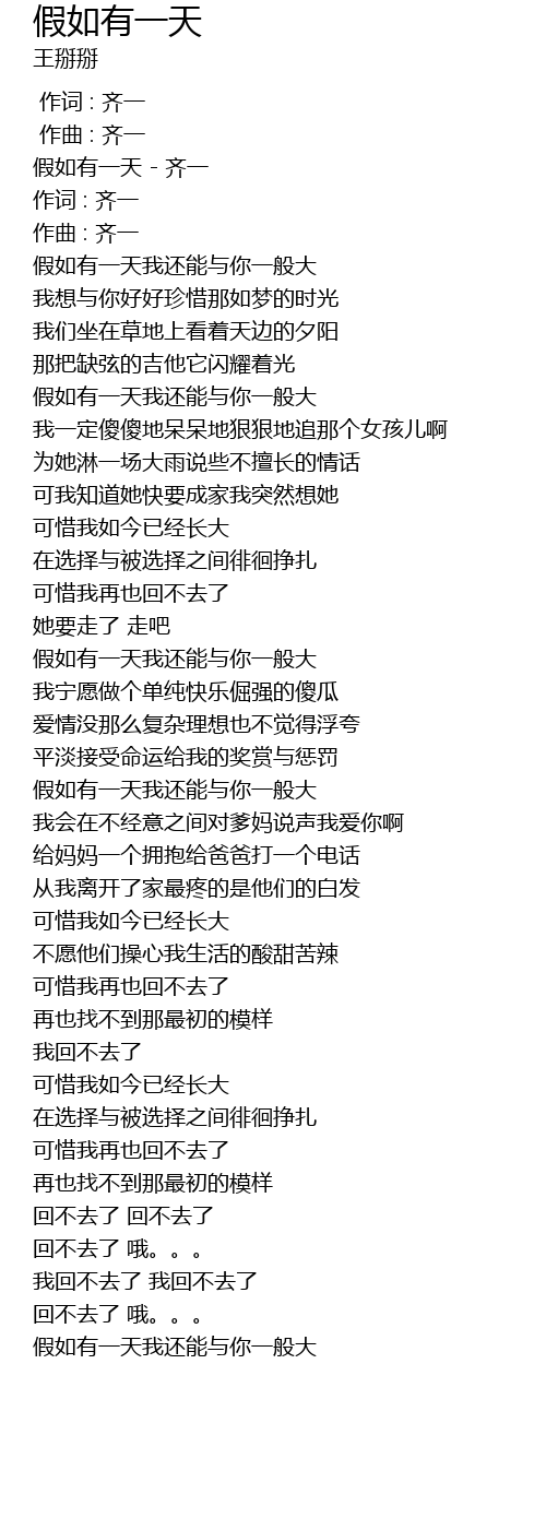 | [00:10.201] | 假如有一天 - 齐一 |