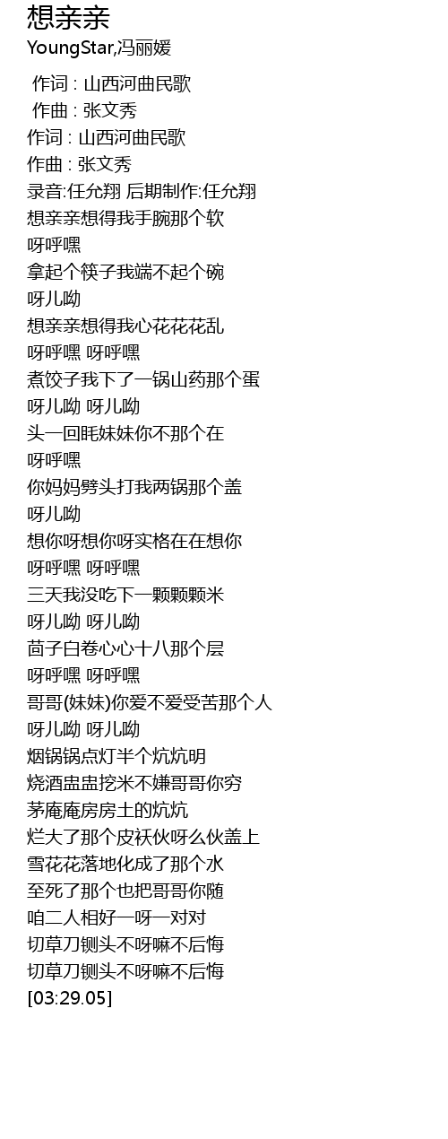 | [00:03.82] | 作词 : 山西河曲民歌 |