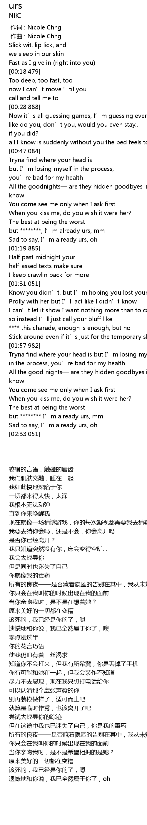| [02:19.991] | but I' m already urs, mm |