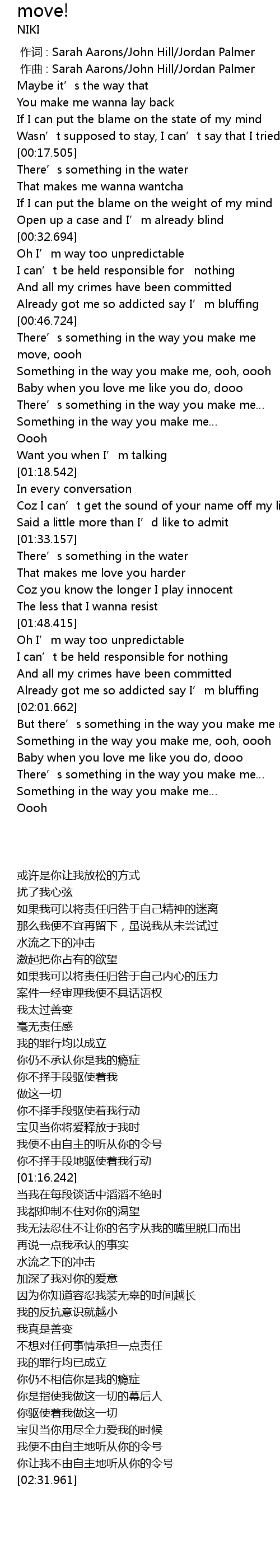 | [02:02.284] | But there' s something in the way you make me move, oooh |