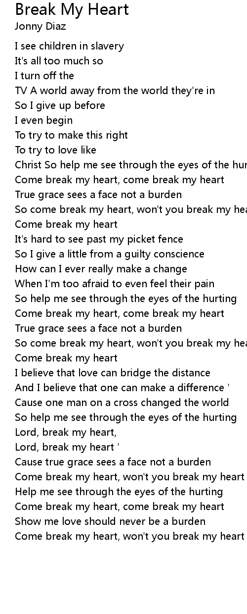 Come break my heart, won't you break my heart |