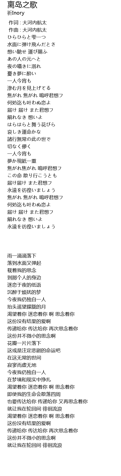 | [02:15.824] | 焦がれ焦がれ 嗚呼君想フ |