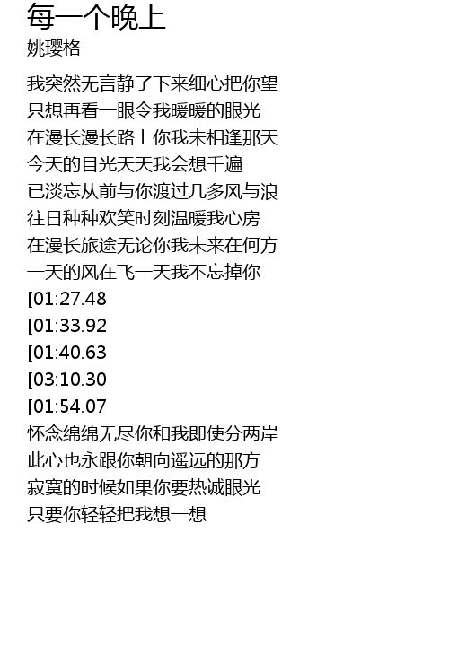 | [02:50.45][01:27.48] | 每一个晚上我将会远望 |