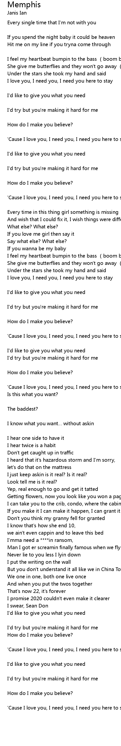 | Song | Memphis |