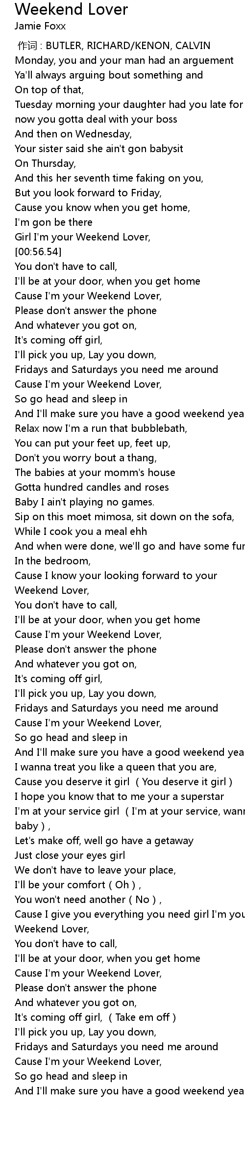 | [00:54.29] | Girl I'm your Weekend Lover, |