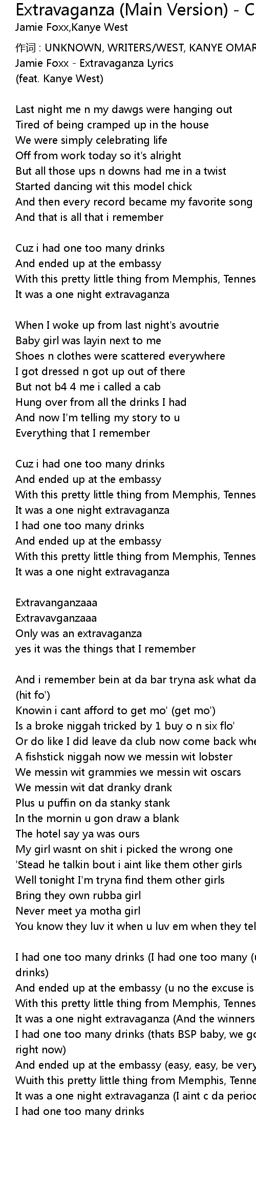 | 作词 : UNKNOWN, WRITERS/WEST, KANYE OMARI | |