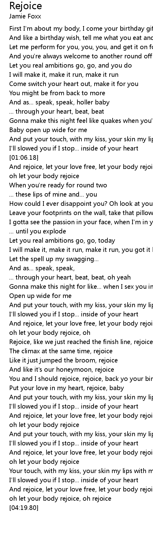 You and I should rejoice, rejoice, back yo your birthday baby, rejoice |