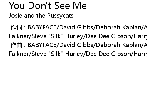 | [00:00.000] | 作词 : BABYFACE/David Gibbs/Deborah Kaplan/Adam Duritz/Jason Falkner/Steve "Silk" Hurley/Dee Dee Gipson/Harry Elfont/Jane Wiedlin |