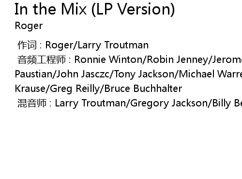 | [00:00.000] | 混音师 : Larry Troutman/Gregory Jackson/Billy Beck |