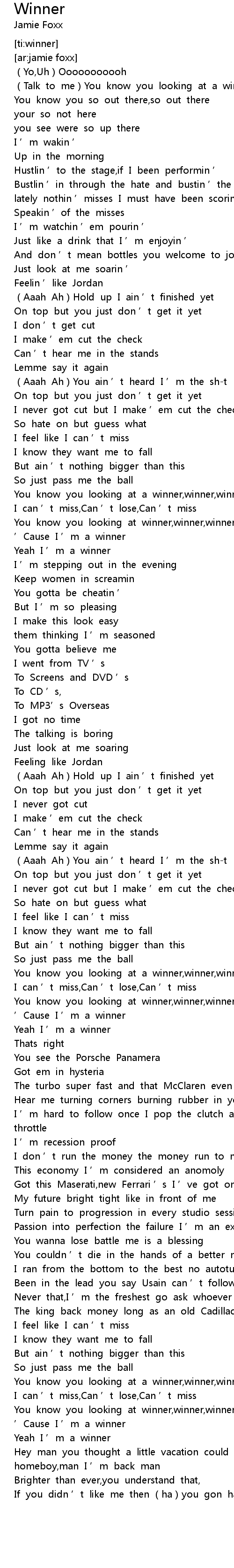 | [02:28.09] | Yeah I ' m a winner |