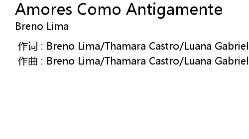 | [00:00.000] | zuò qǔ : Breno Lima Thamara Castro Luana Gabriela Rayanne Diniz |