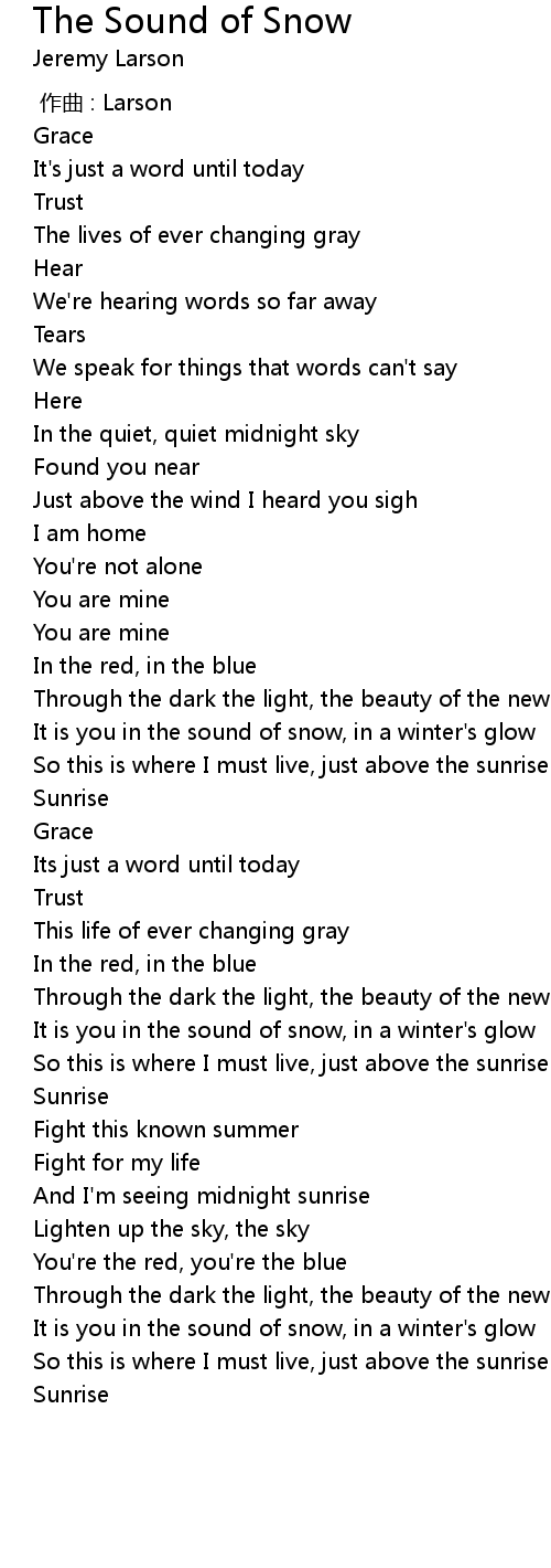 | [04:11.799] | It is you in the sound of snow, in a winter's glow |