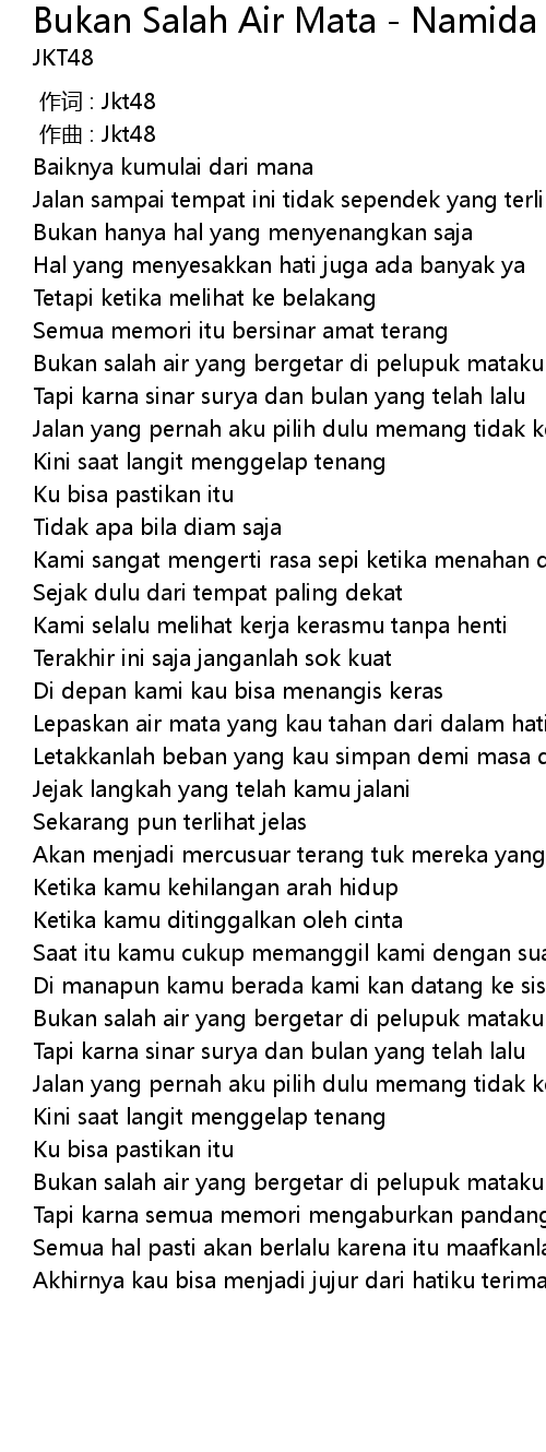 | Song | Bukan Salah Air Mata - Namida No Sei Janai |