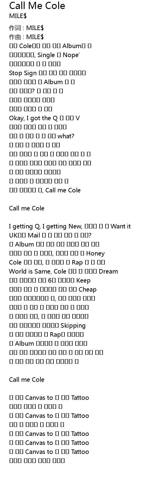 내게 말해주면 돼, Call me Cole |