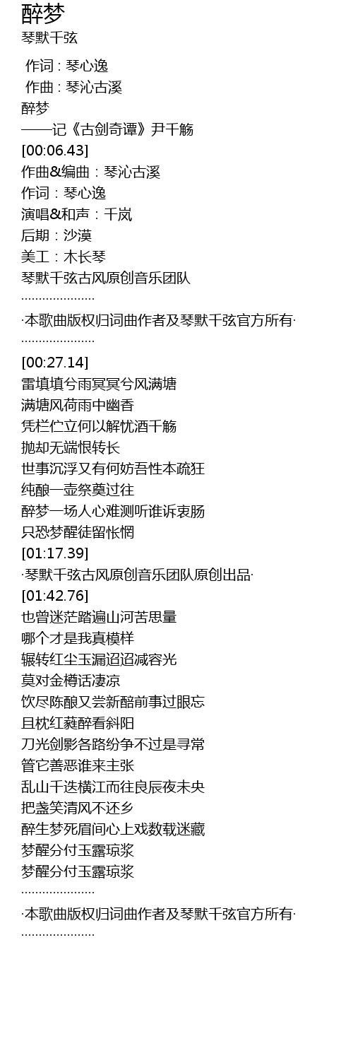 | [00:21.01] | 琴默千弦古风原创音乐团队 |