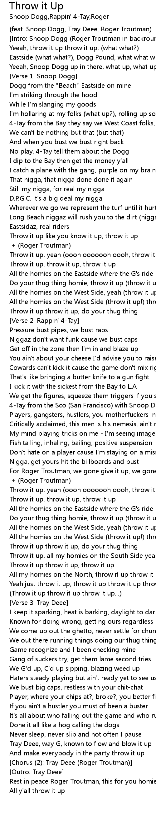 All the homies on the West Side (throw it up!) throw it up throw it up |