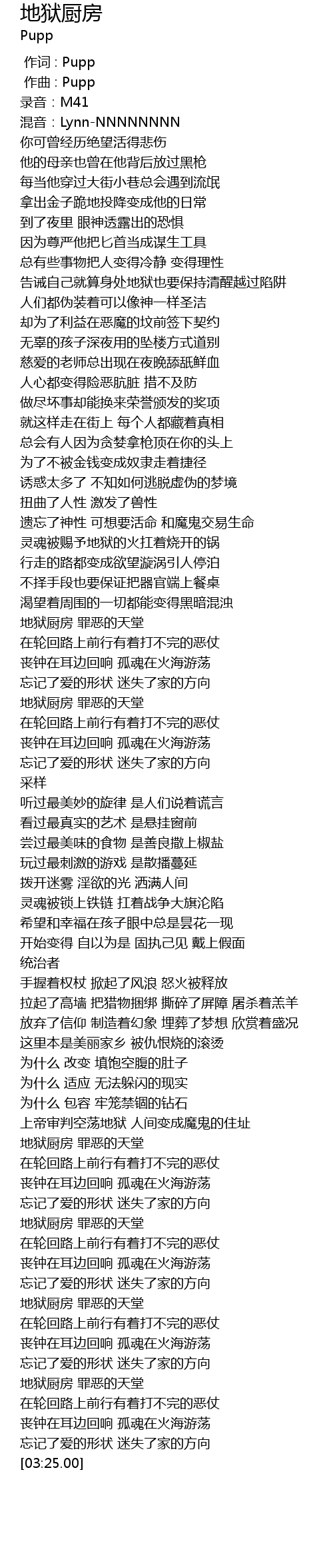 | [00:00.000] | 作词 : Pupp |