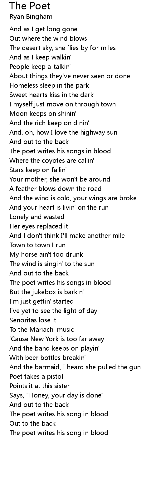 The poet writes his songs in blood |