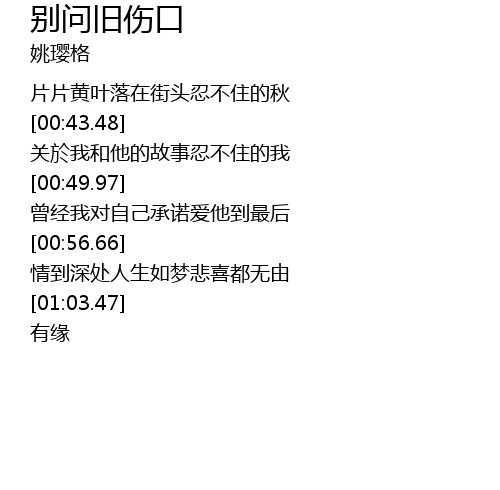 | [00:37.98] | 片片黄叶落在街头忍不住的秋 |