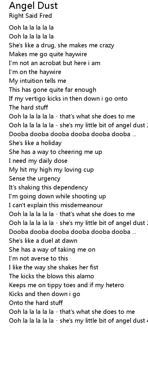 Ooh la la la la la - she's my little bit of angel dust 4x |