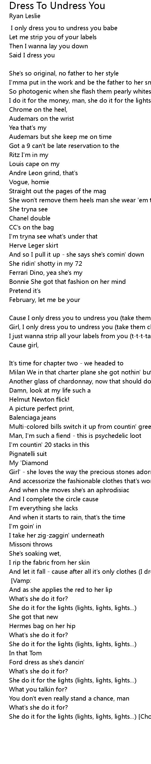 And let it fall - cause after all it's only clothes (I dress you to undress you) [Chorus] [Vamp:] |