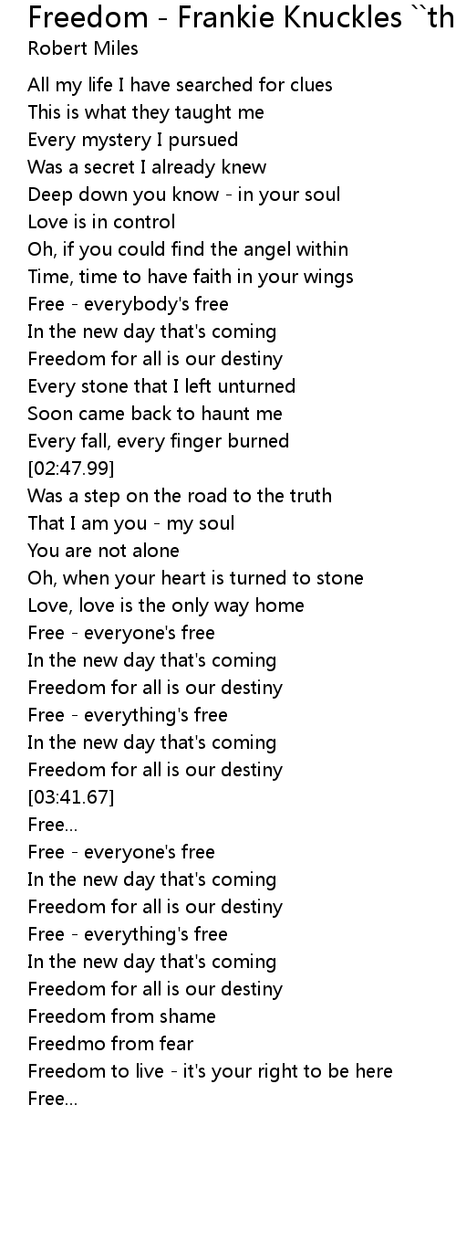 Freedom - Frankie Knuckles ``the Shit'' Mix Lyrics