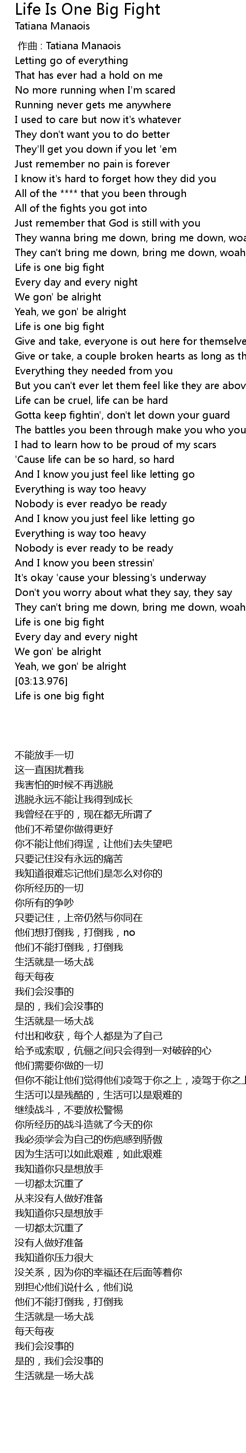 | [03:18.067] | Life is one big fight |