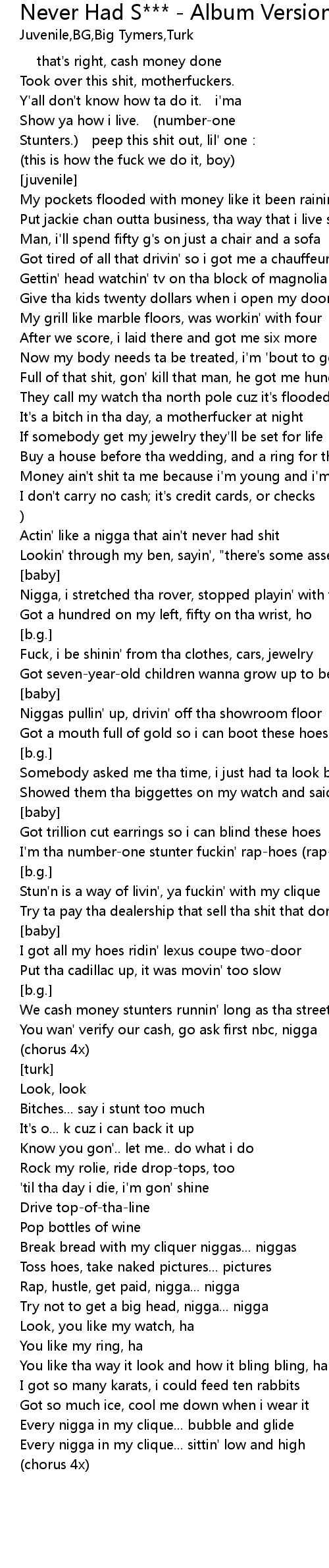 | [juvenile] that's right, cash money done | |