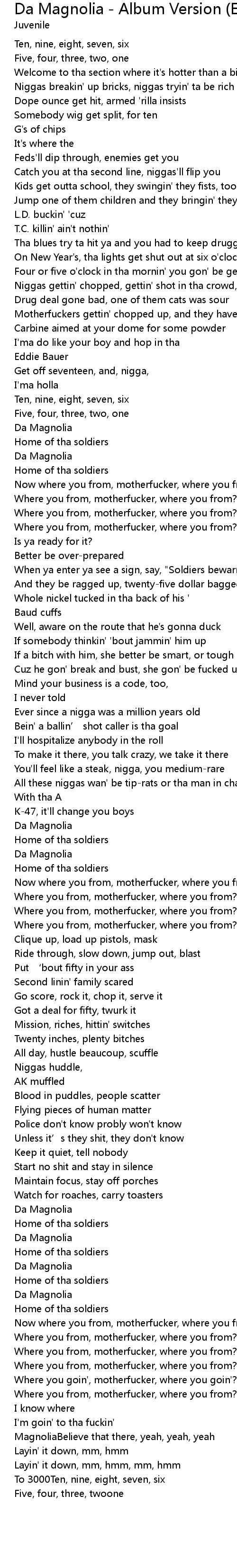| Song | Da Magnolia - Album Version (Explicit) |