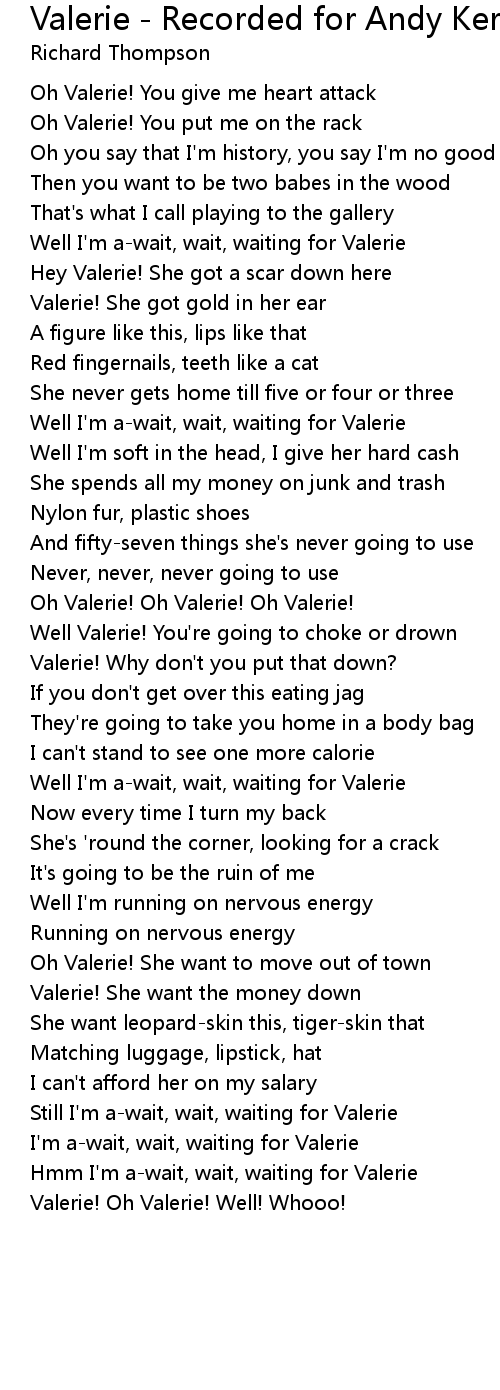 Valerie - Recorded for Andy Kershaw - 07/01/1987 Lyrics