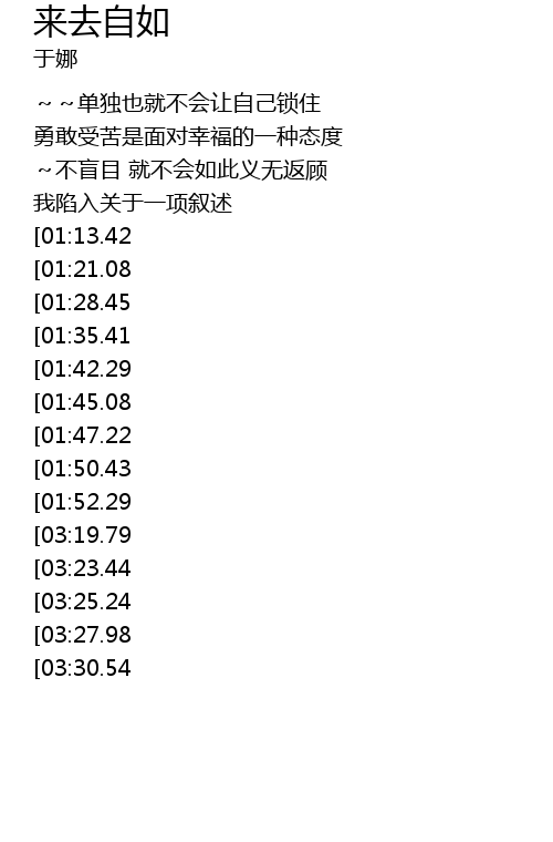 | [03:08.79][01:45.08] | 轻松的来去自如 |